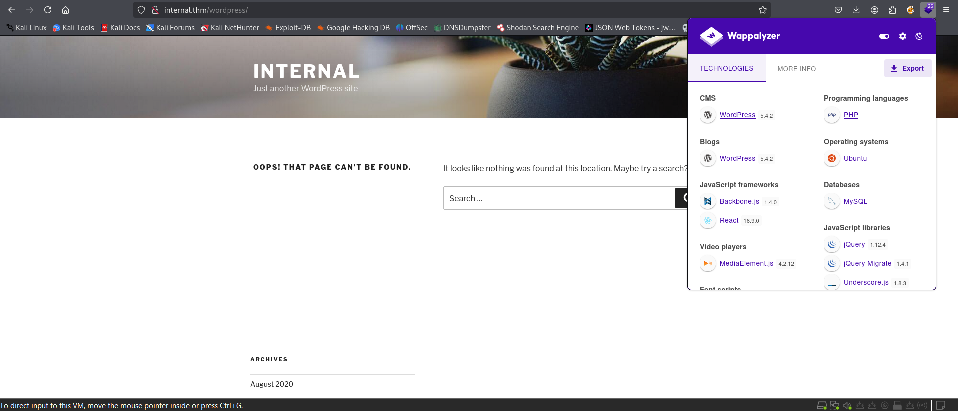 From `Wappalyzer` extension, we could see that the site is using `WordPress v5.4.2`. I look for funny entries point for this site as well as running a `wpscan` and a `ssh` enumeration (I did sqlmap but, figured it wasn't the way):